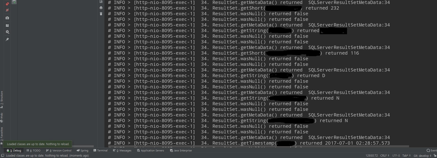 - resultSet에 관련 내용을 검색한 결과 - 방대한 양의 로그를 찍어준다.