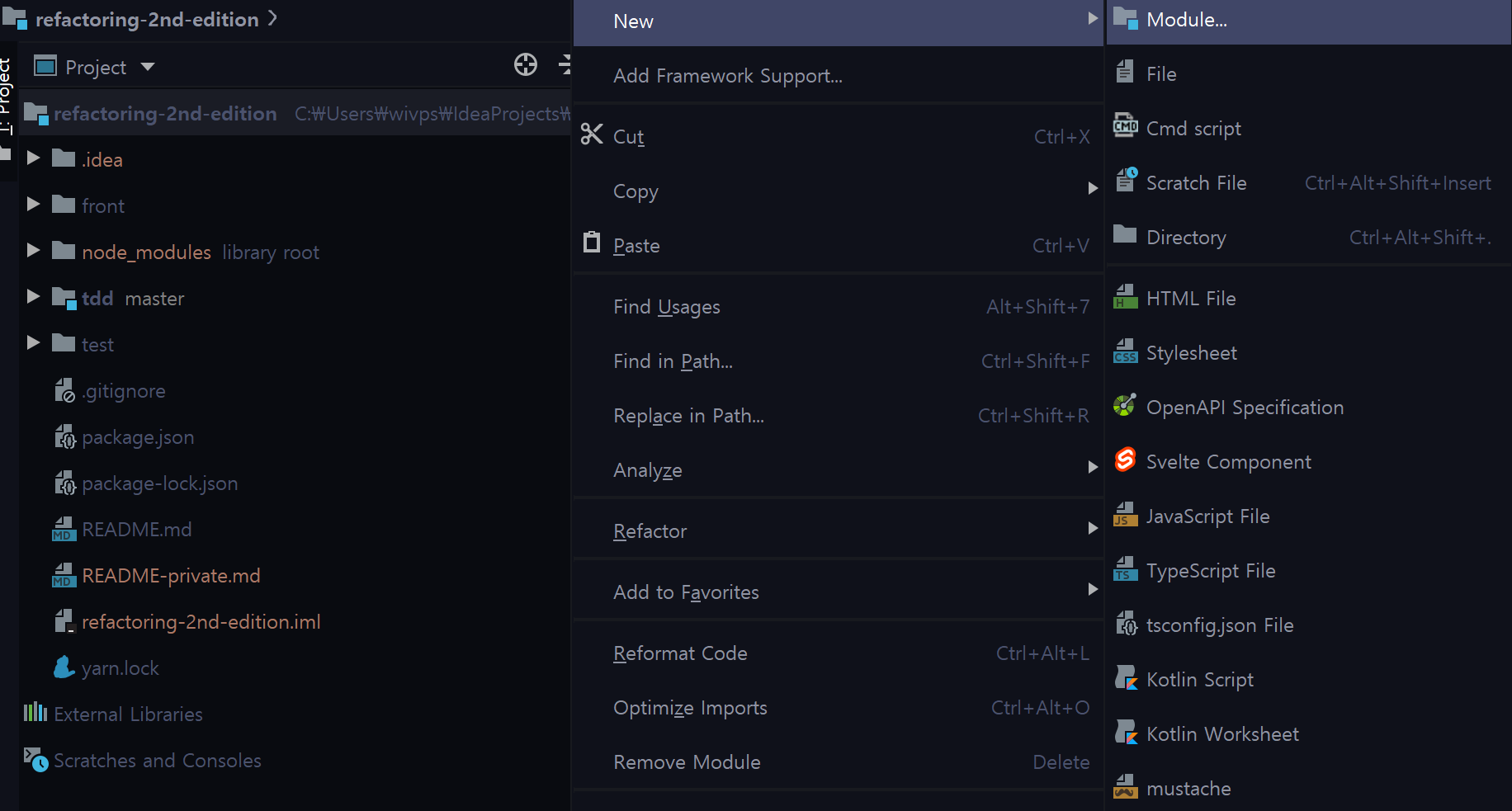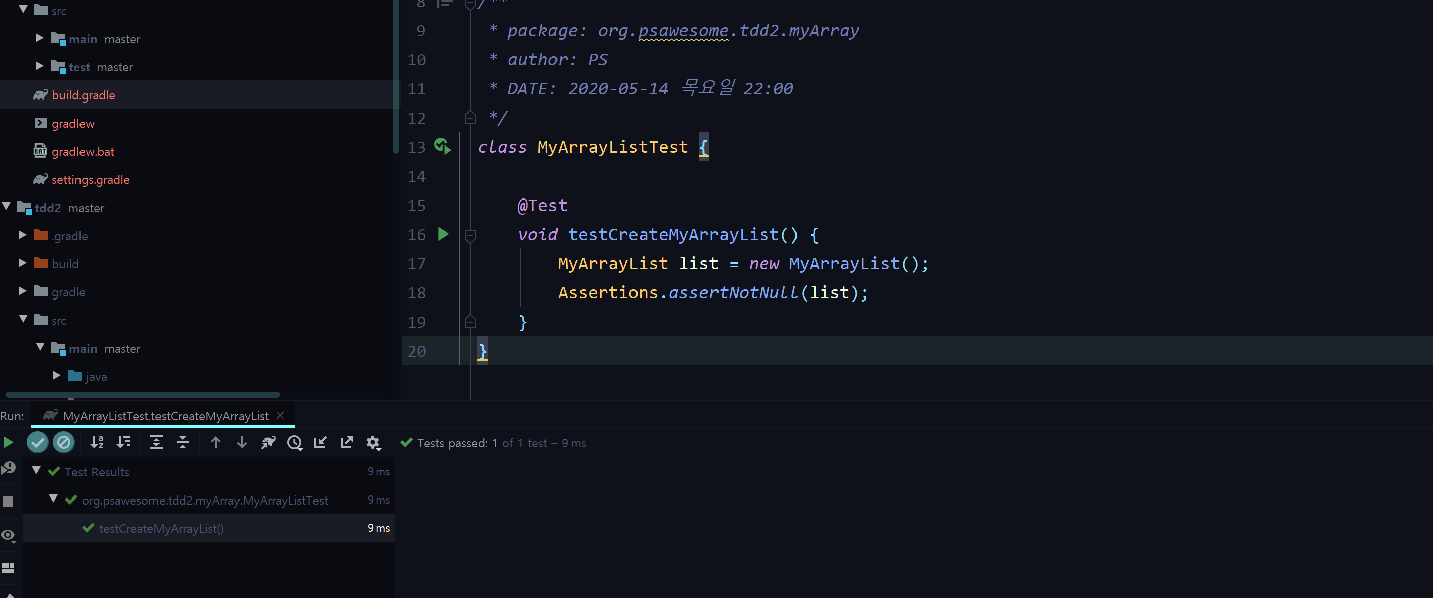 먼저 저는 tdd 라는 모듈을 추가해서 테스트 코드를 작성하고 있고,