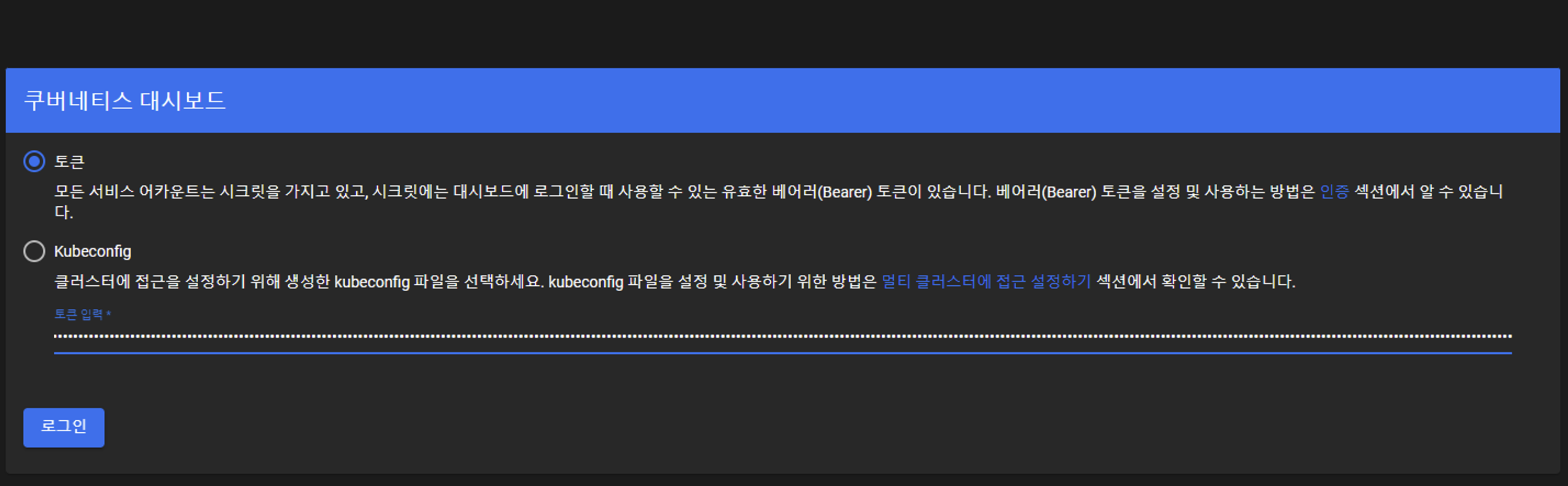 5. dashboard token에 붙여넣기