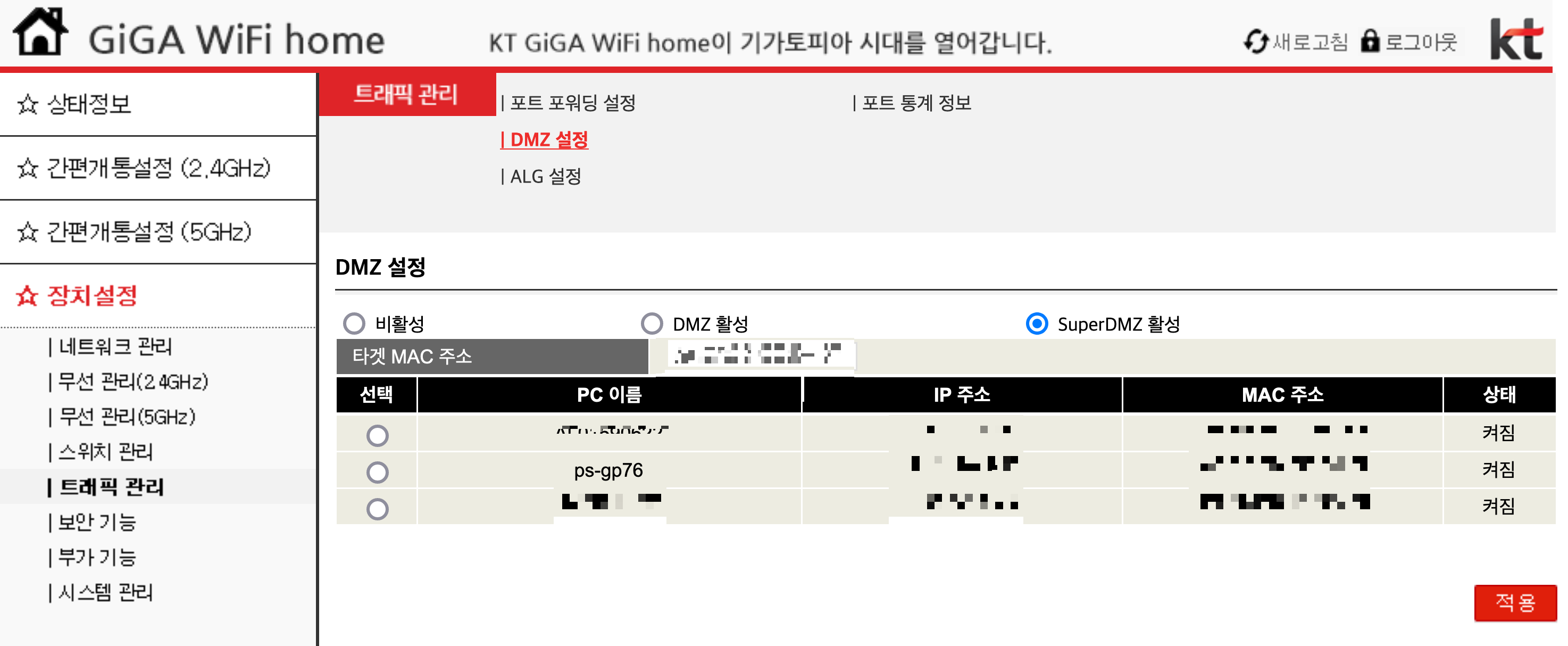 - 공유기 super dmz 설정