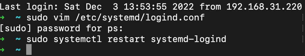 ➜ ~ sudo vim /etc/systemd/logind.conf