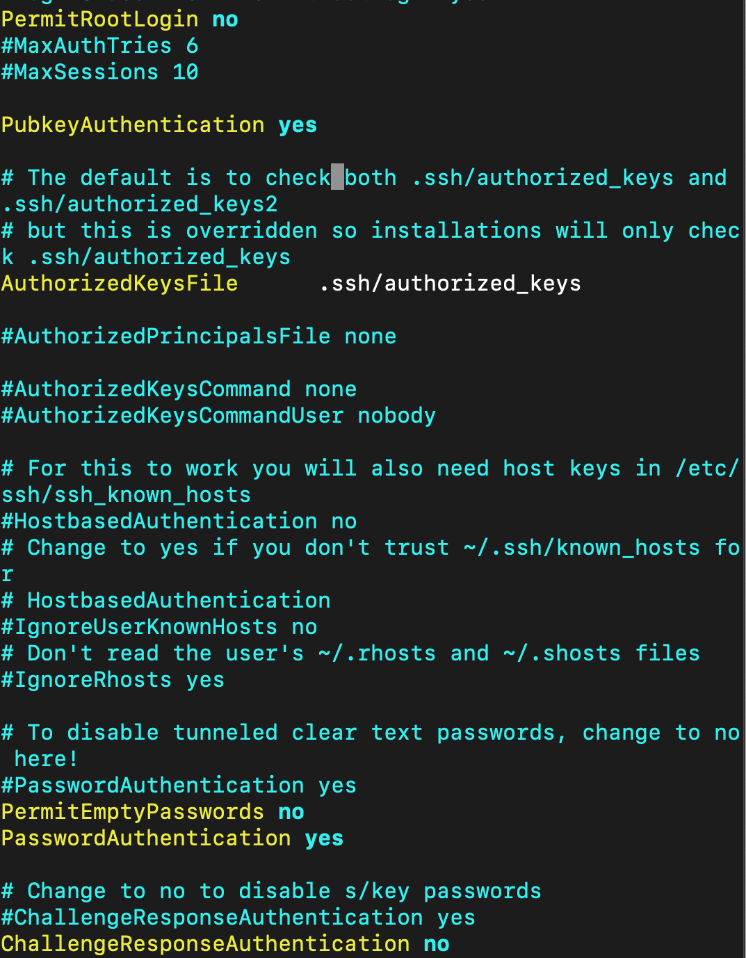 - PubkeyAuthentication yes