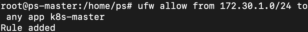 sudo ufw allow from 172.30.1.0/24 to any app k8s-master && sudo ufw reload