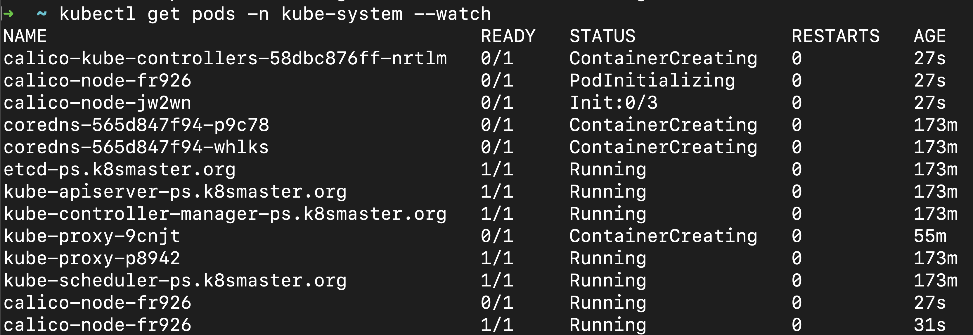 sudo kubeadm init --control-plane-endpoint=ps.k8smaster.org --pod-network-cidr=10.224.0.0/16