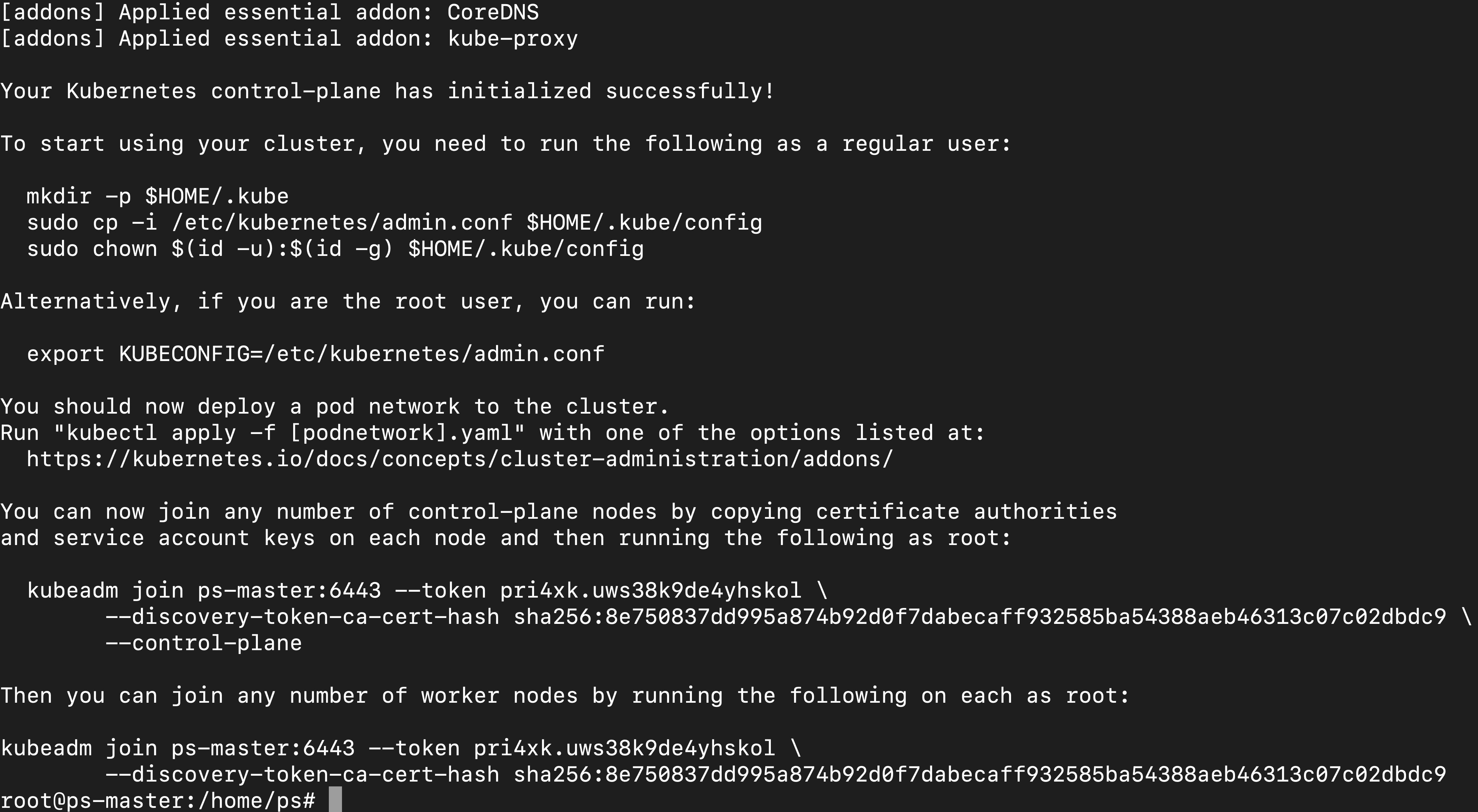 sudo kubeadm init --control-plane-endpoint=ps.k8smaster.org