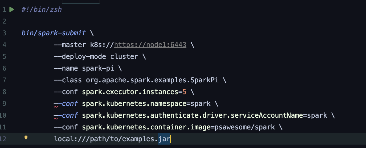 —-conf spark.kubernetes.namespace=spark \