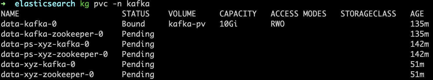 kubectl get pvc -n kafka