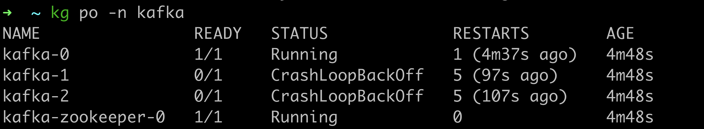 쿠버네티스 클러스터에 카프카를 설치(배포)하는 과정에 발생한 이슈입니다.