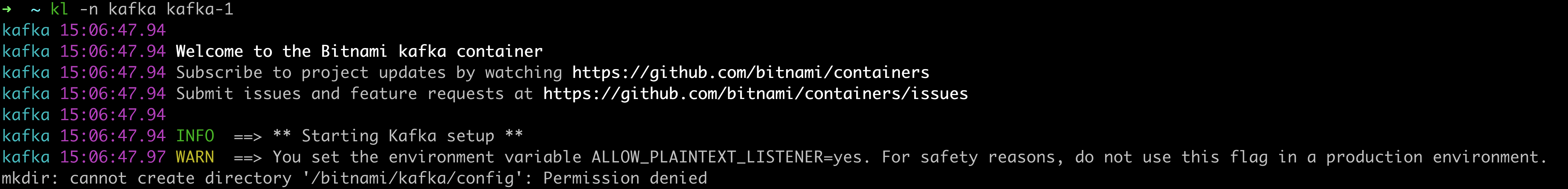 helm install kafka bitnami/kafka --set volumePermissions.enabled=true --create-namespace --namespace kafka -f values.yaml