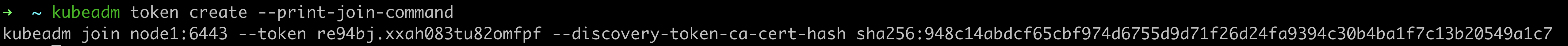 kubeadm join node1:6443 --token re94bj.xxah083tu82omfpf --discovery-token-ca-cert-hash sha256:948c14abdcf65cbf974d6755d9d71f26d24fa9394c30b4ba1f7c13b20549a1c7