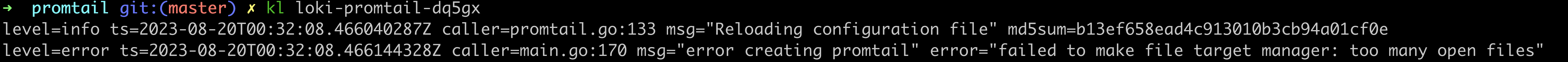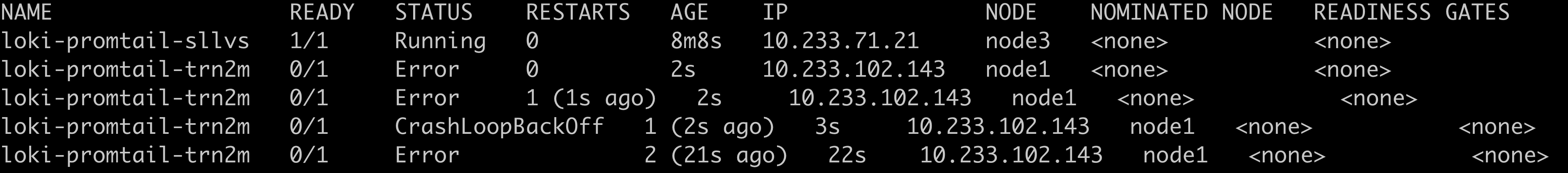 node 1번에 Loki promtail이 제목과 같은 오류로 실행되지 않았습니다.