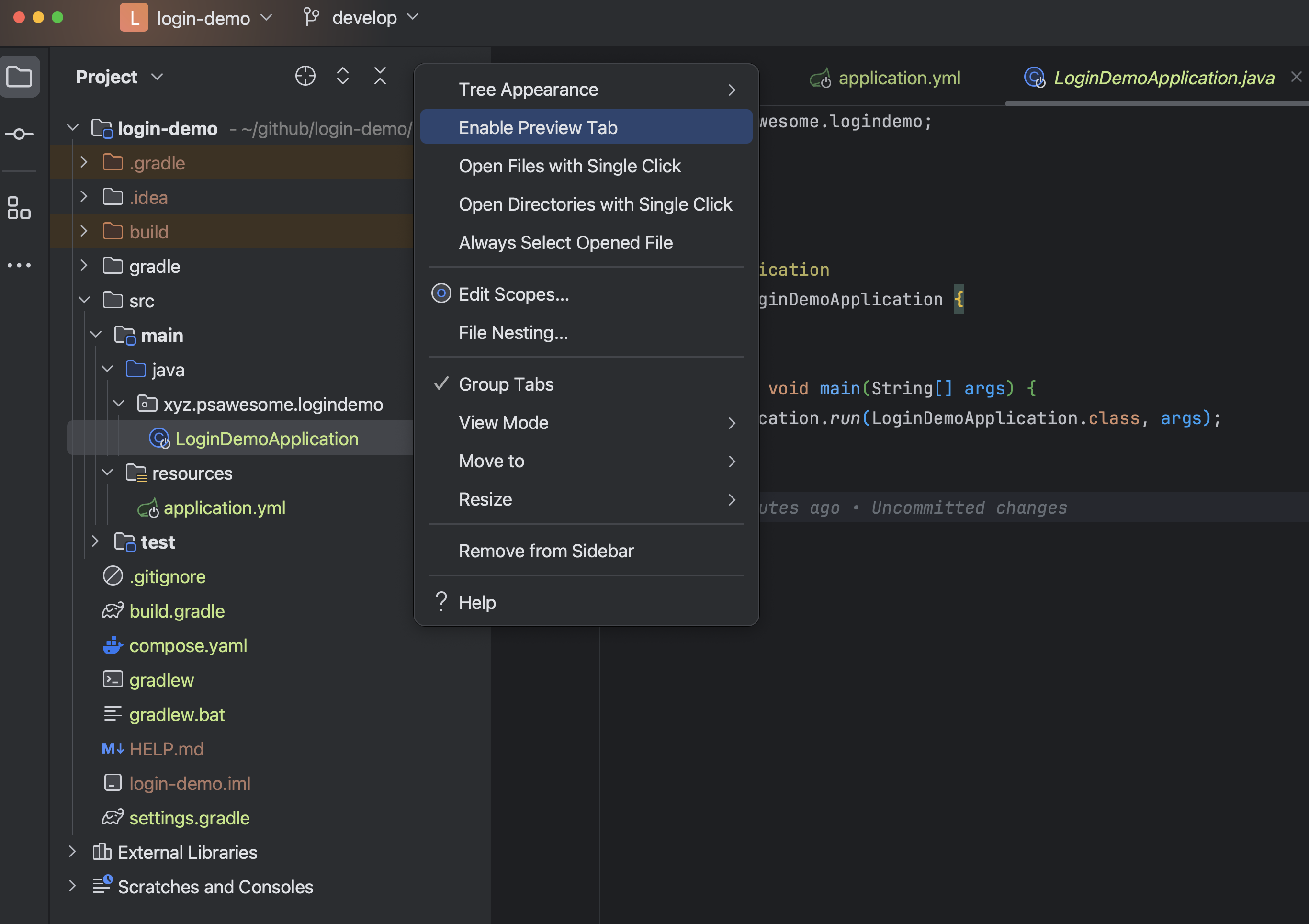 Enable Preview Tab 을 해제하면, 엔터를 쳐야 파일이 열려요!
