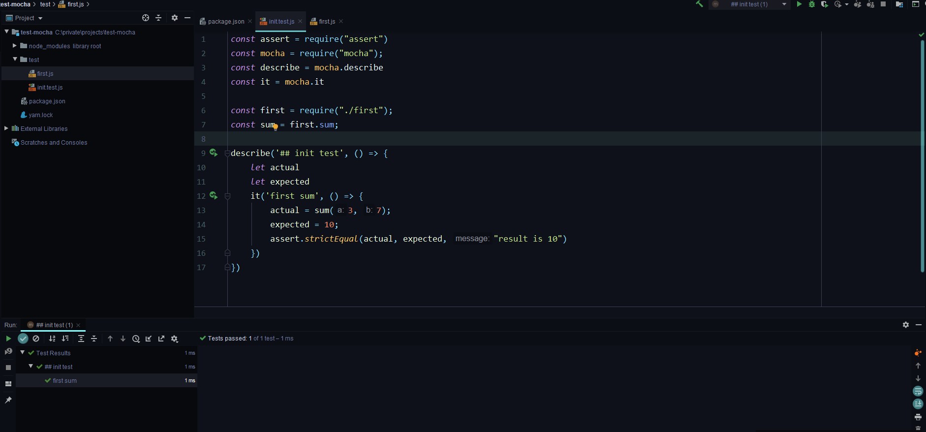 it('first sum', () => {
