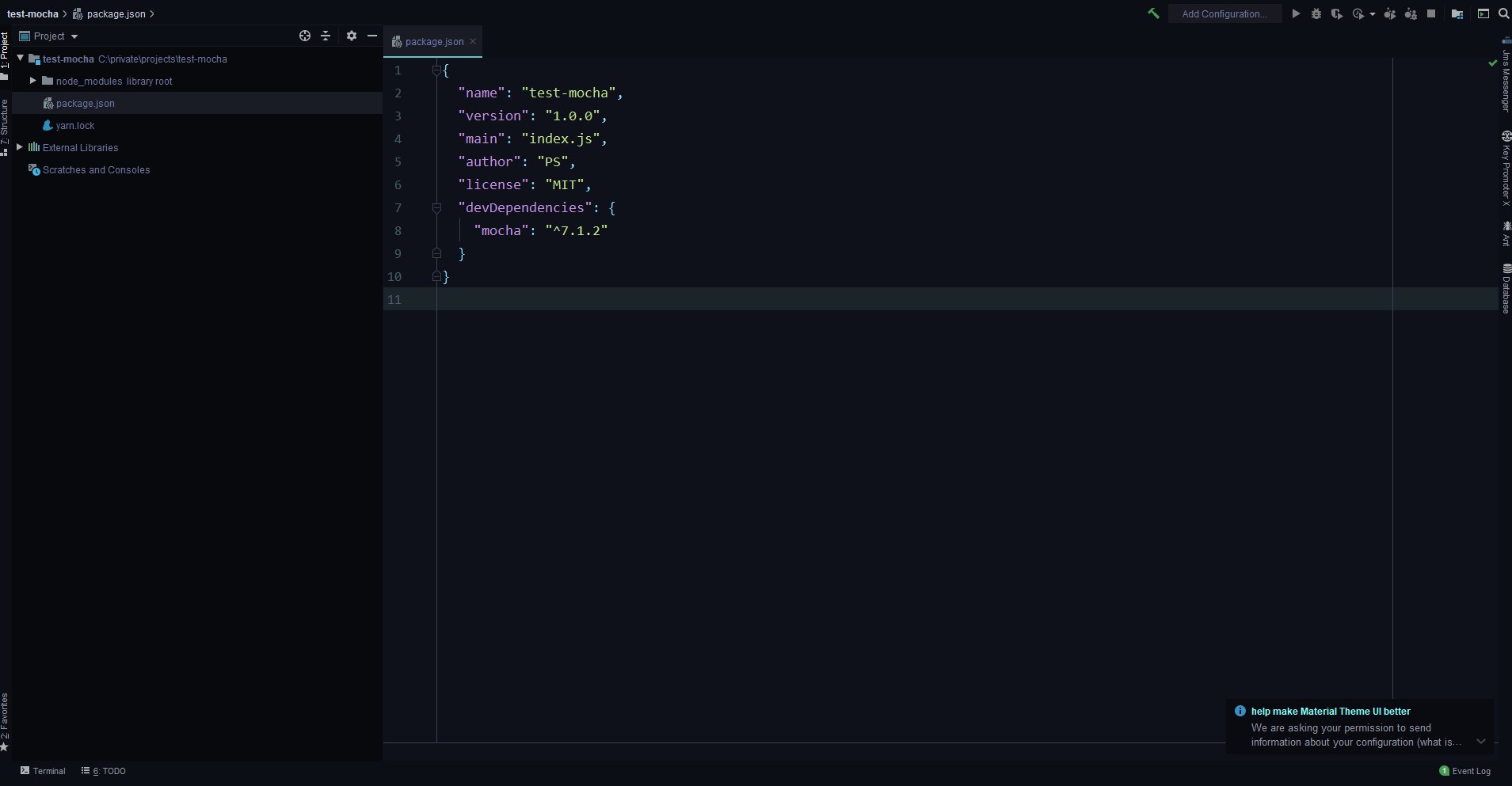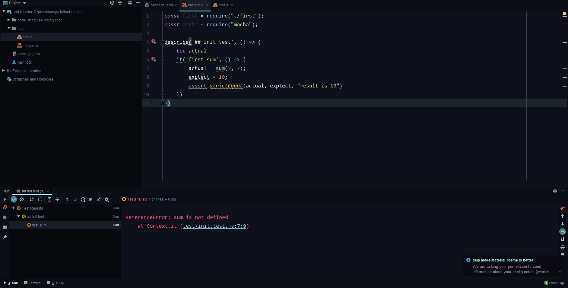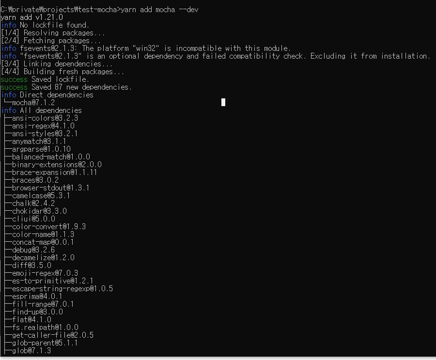 yarn add mocha --dev