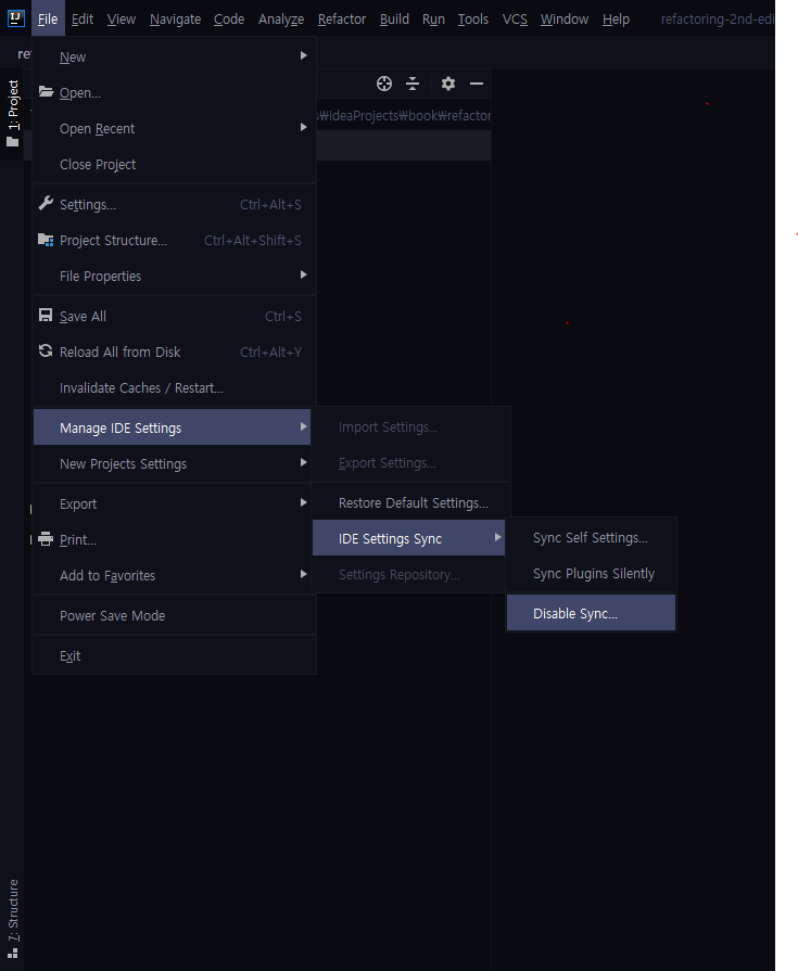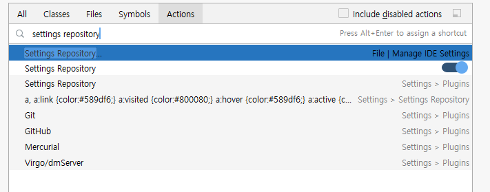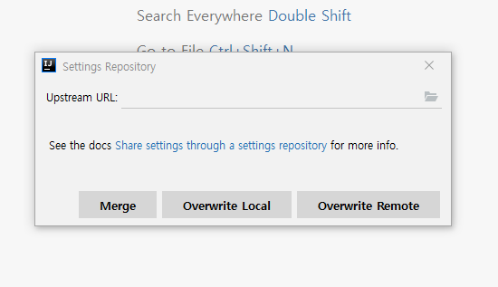 * 프로젝트를 닫으셔야 settings repository 화면이 나올 수도 있습니다. ( version 2020 .1 .1)