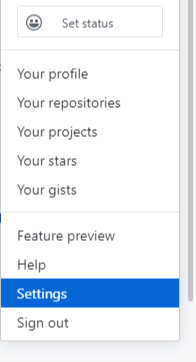 * github 오른쪽 위에 프로필 사진을 누르시면 아래의 목록이 나옵니다.