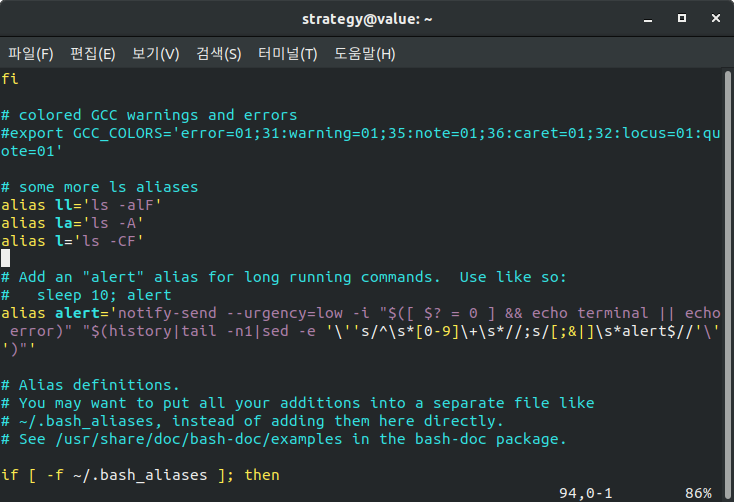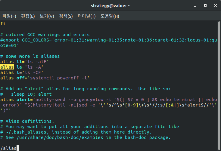 ll을 입력하면 ls -alf 가 되도록 설정되어 있다는 것을 인지할 수 있으므로