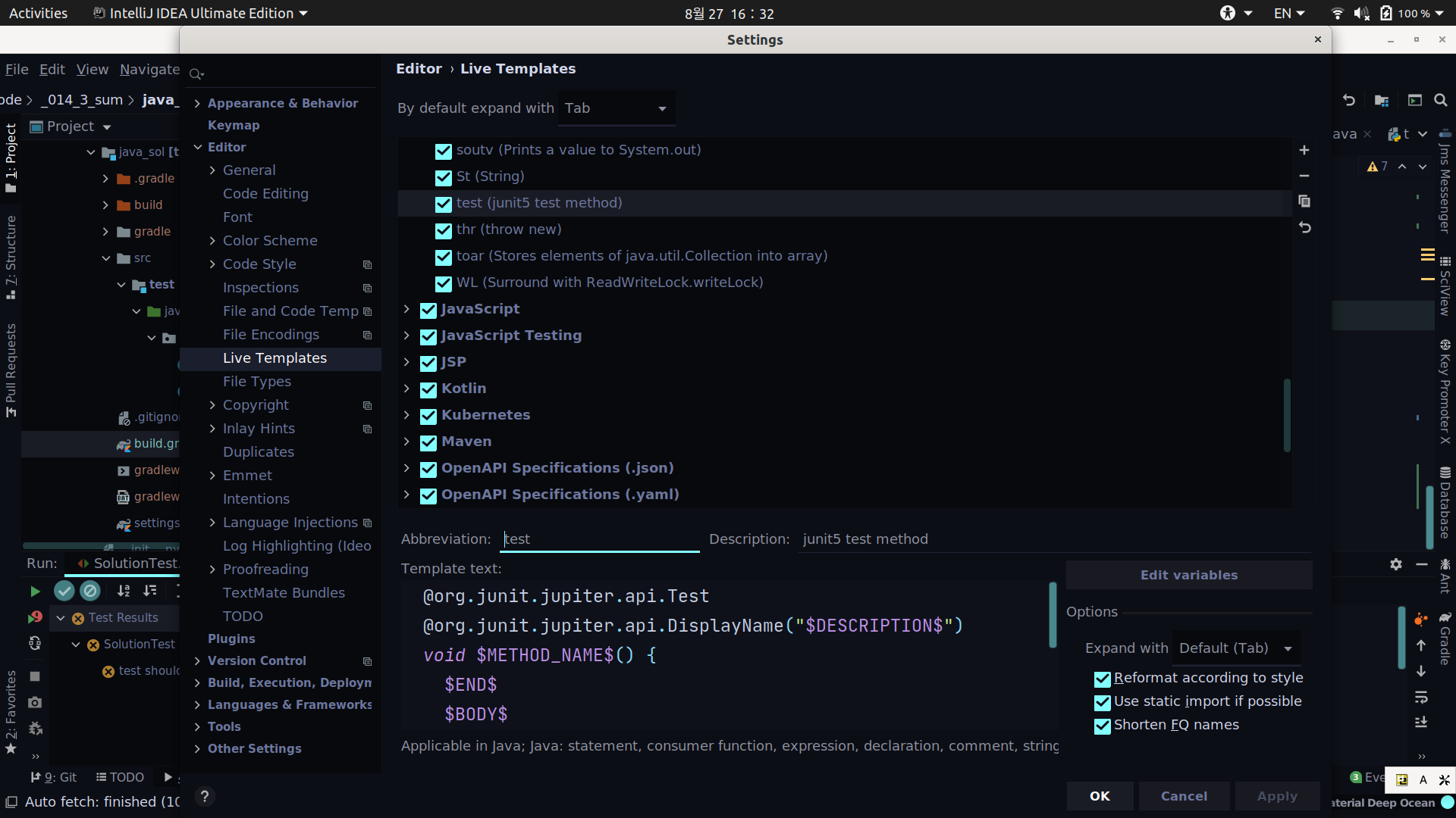 intellij linux keymap 기준으로 Ctrl + J이며, JUnit5 테스트 메서드 템플릿을 등록하는 과정의 글입니다.