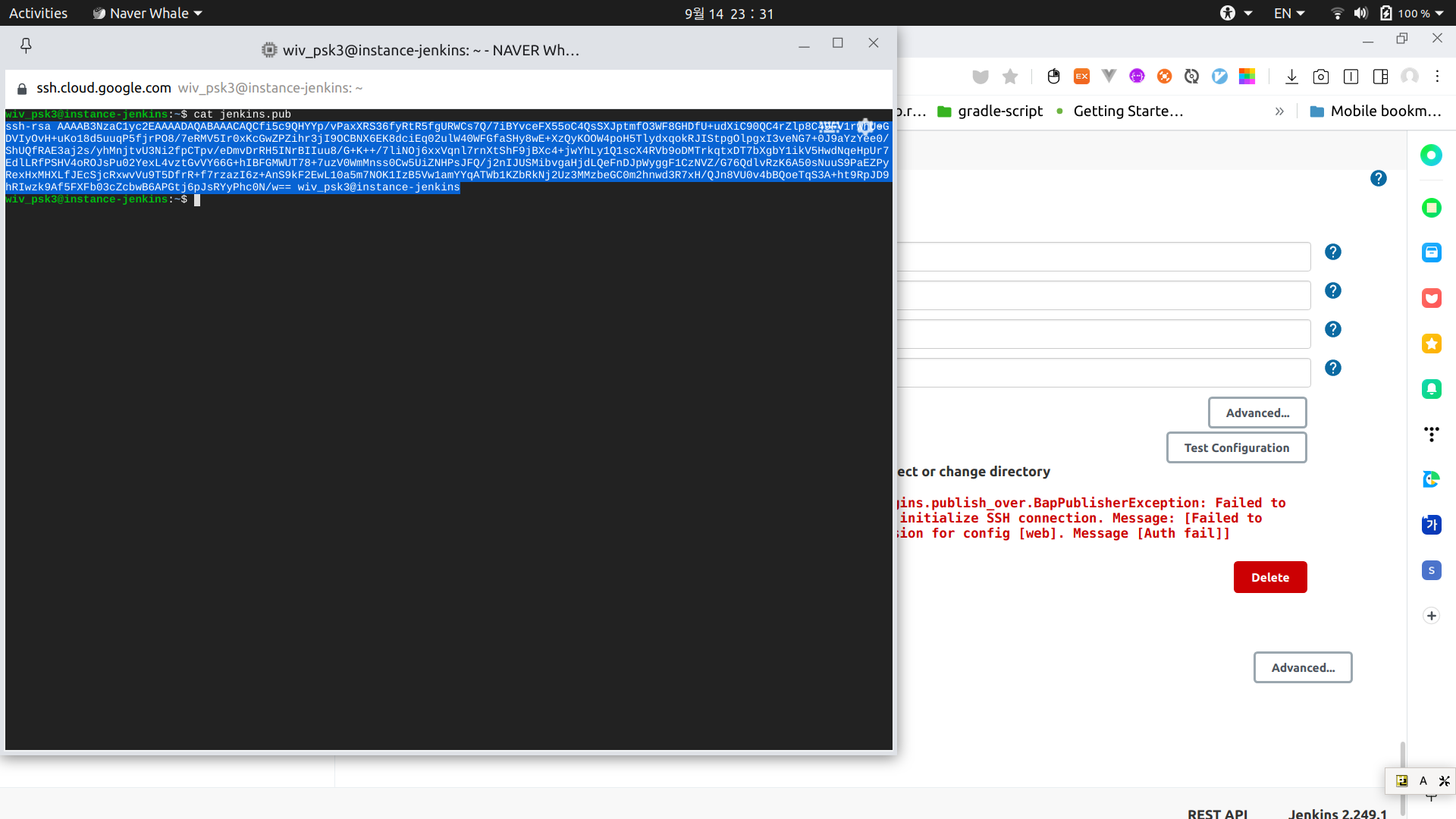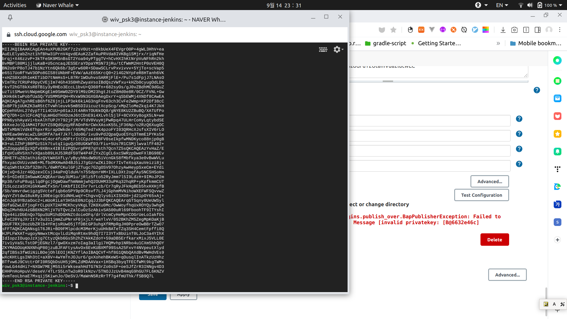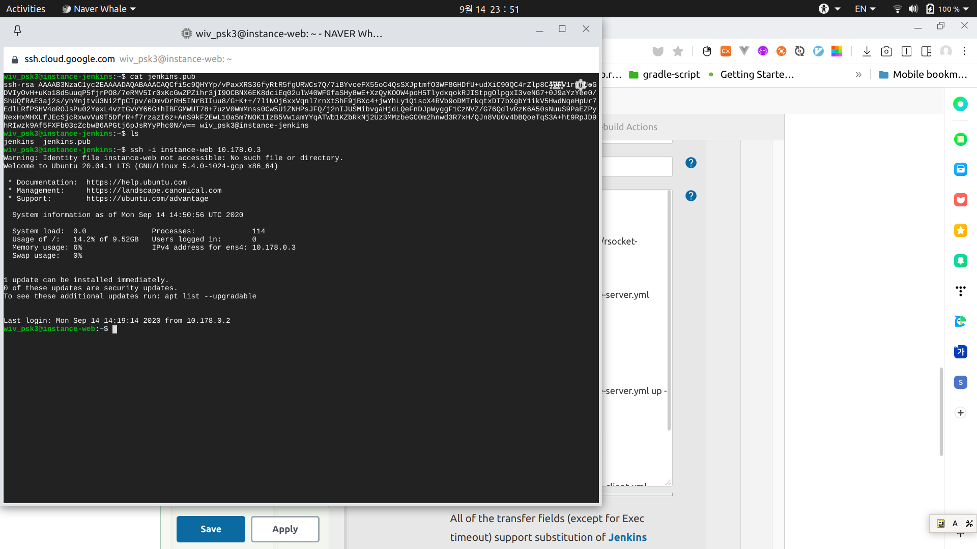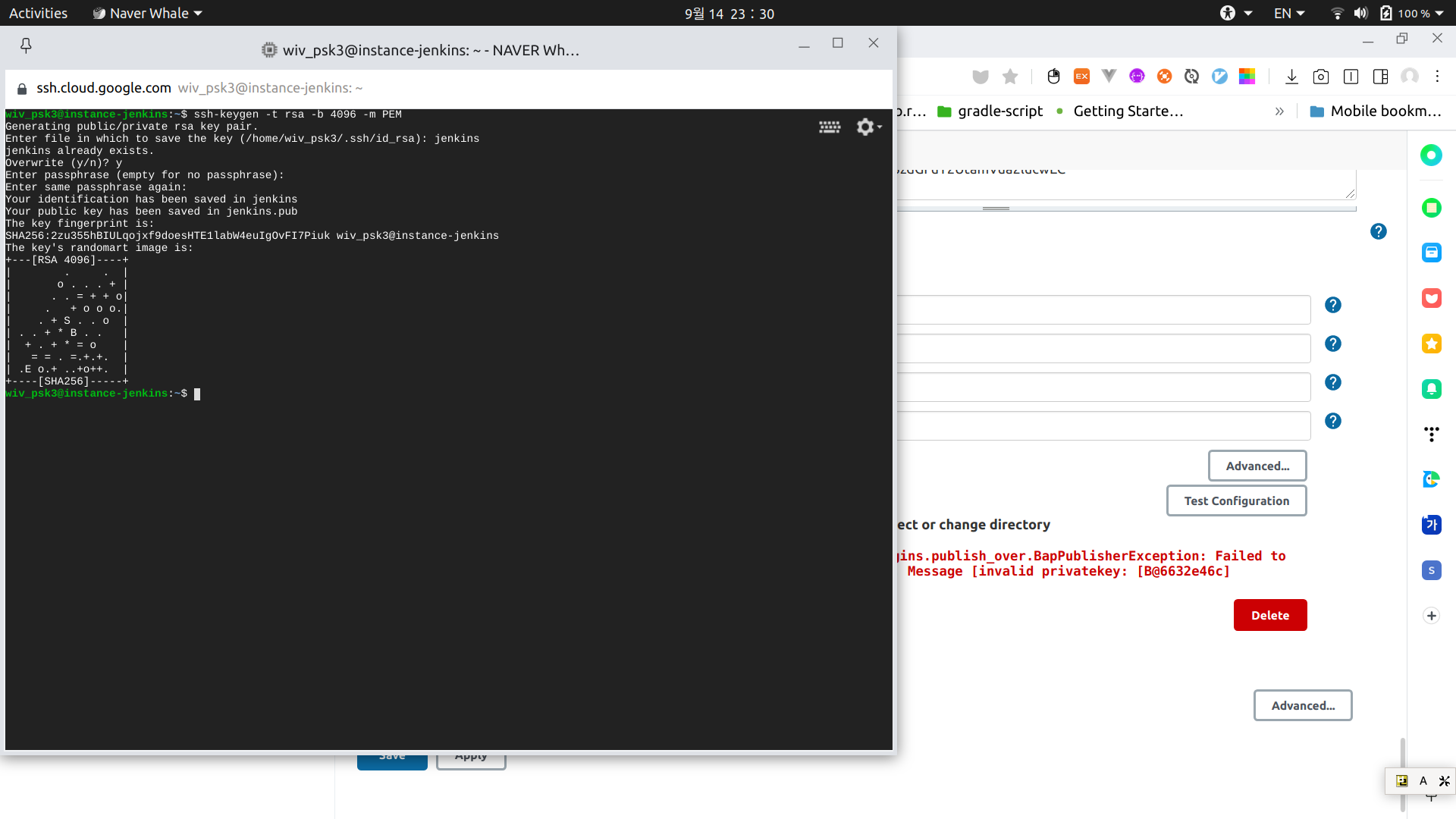 - GCP의 jenkins instance에 접속하셔서 아래 명령어를 통해 jenkins privatekey를 생성합니다.