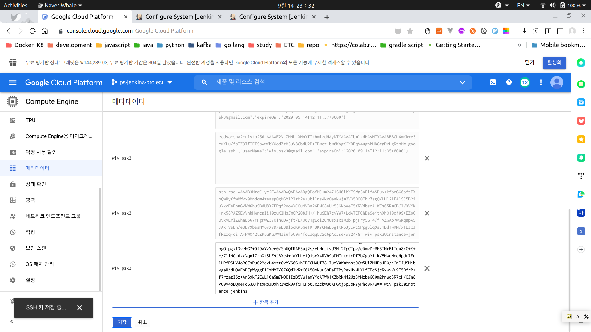 - publickey를 gcp 메타데이터 ssh에 추가합니다.