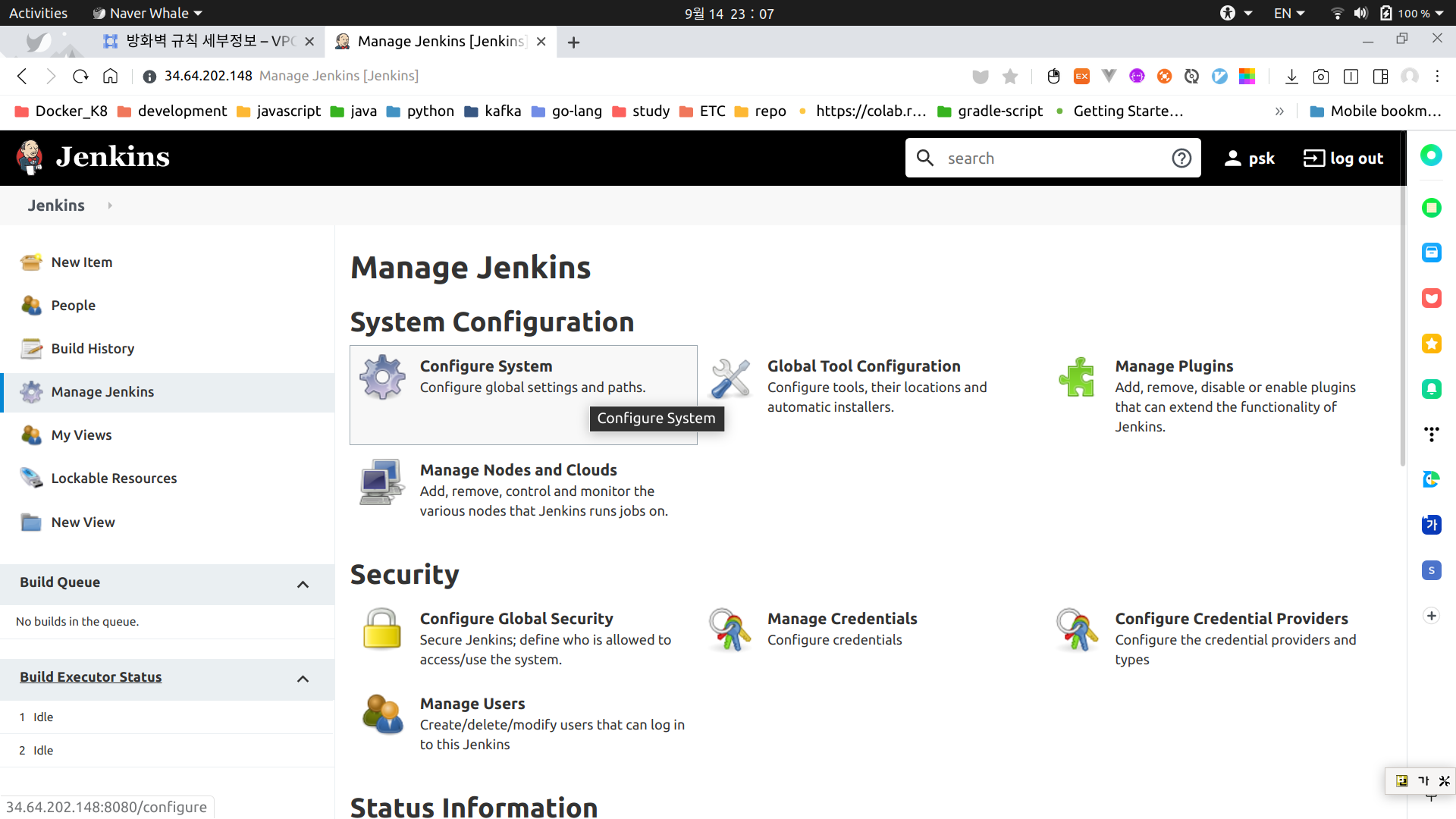 기본적인 마우스를 활용한 jenkins 설정은 이것으로 끝났습니다.