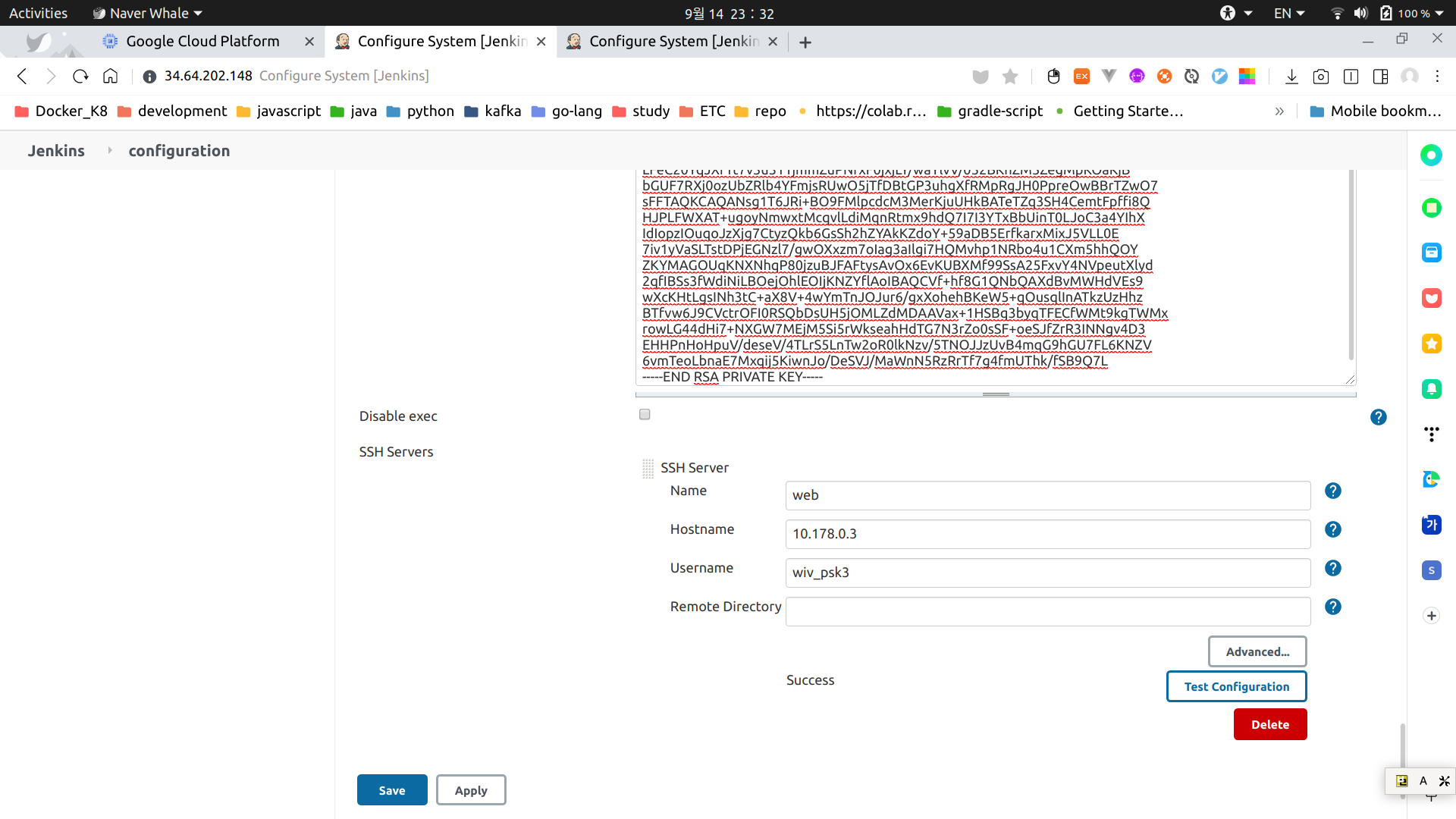 - config system 가장 밑에 publish over ssh를 확인하세요.