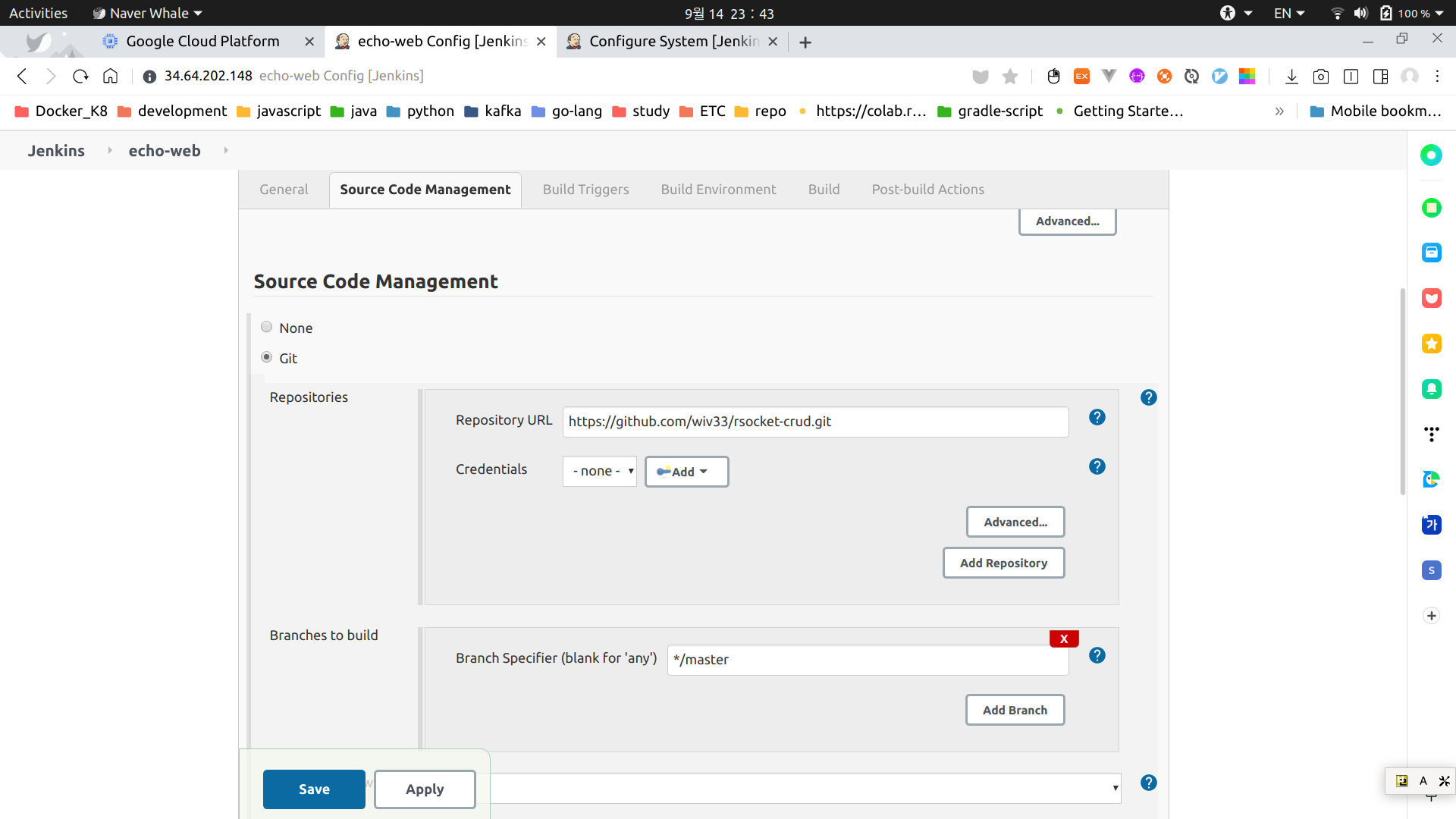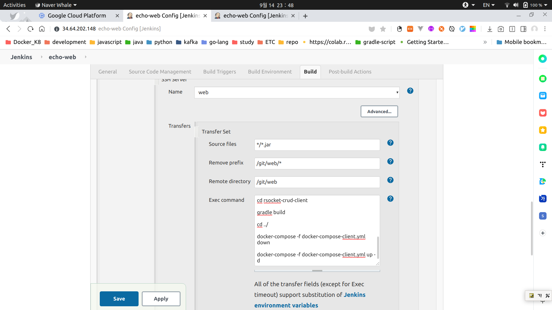2020/09/14 - [GCP] - GCP에 jenkins 설치 후 jar container 배포하기