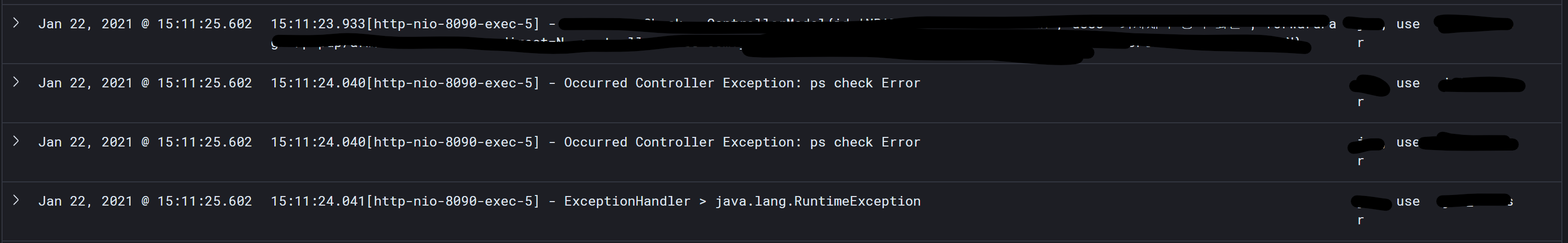 각각의 application 공통 로그의 형식은 같다.