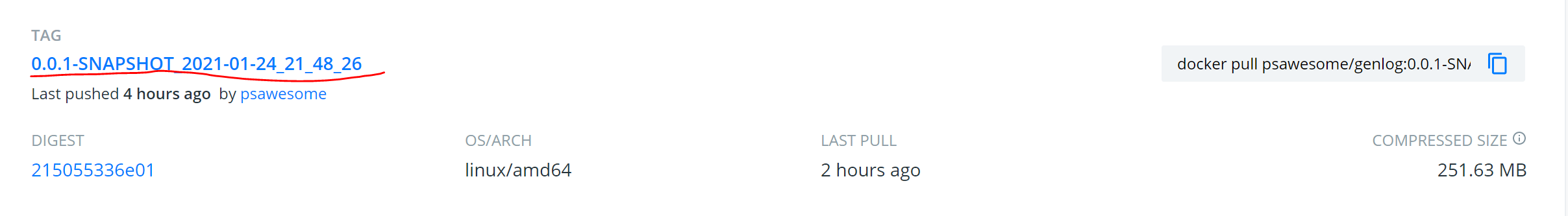 tag 'Dockerhub', "psawesome/genlog:${project.version}_${BUILD_VERSION}"