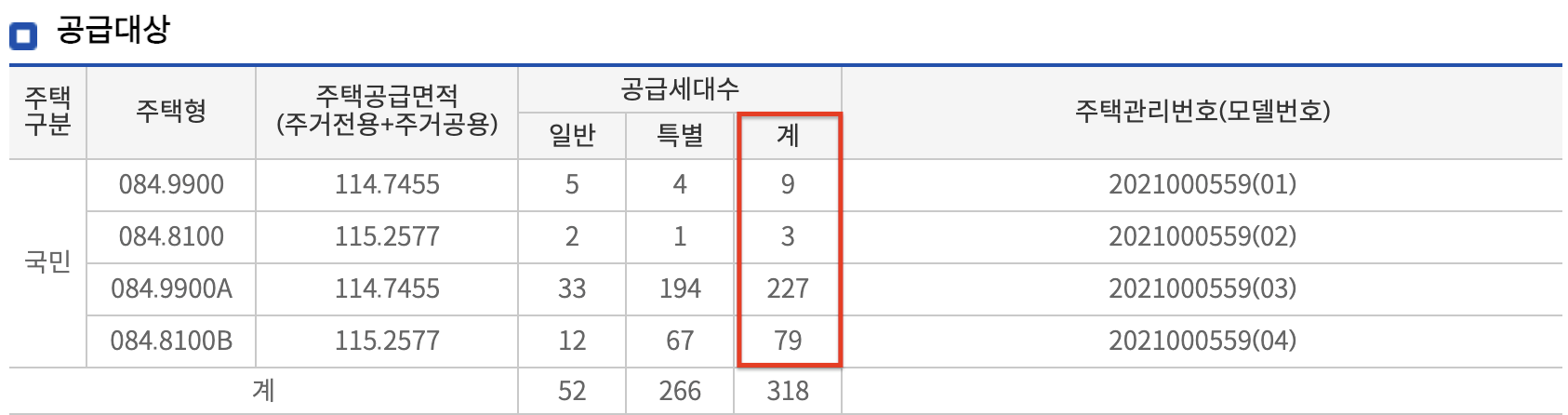 | 특별공급 | 1순위 | 2순위 |