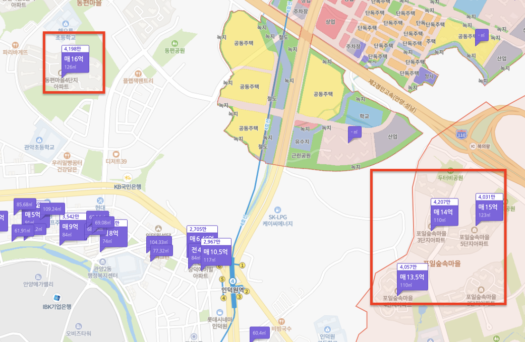 경기도 의왕시 포일동은 평당 4천만 원 선이네요.