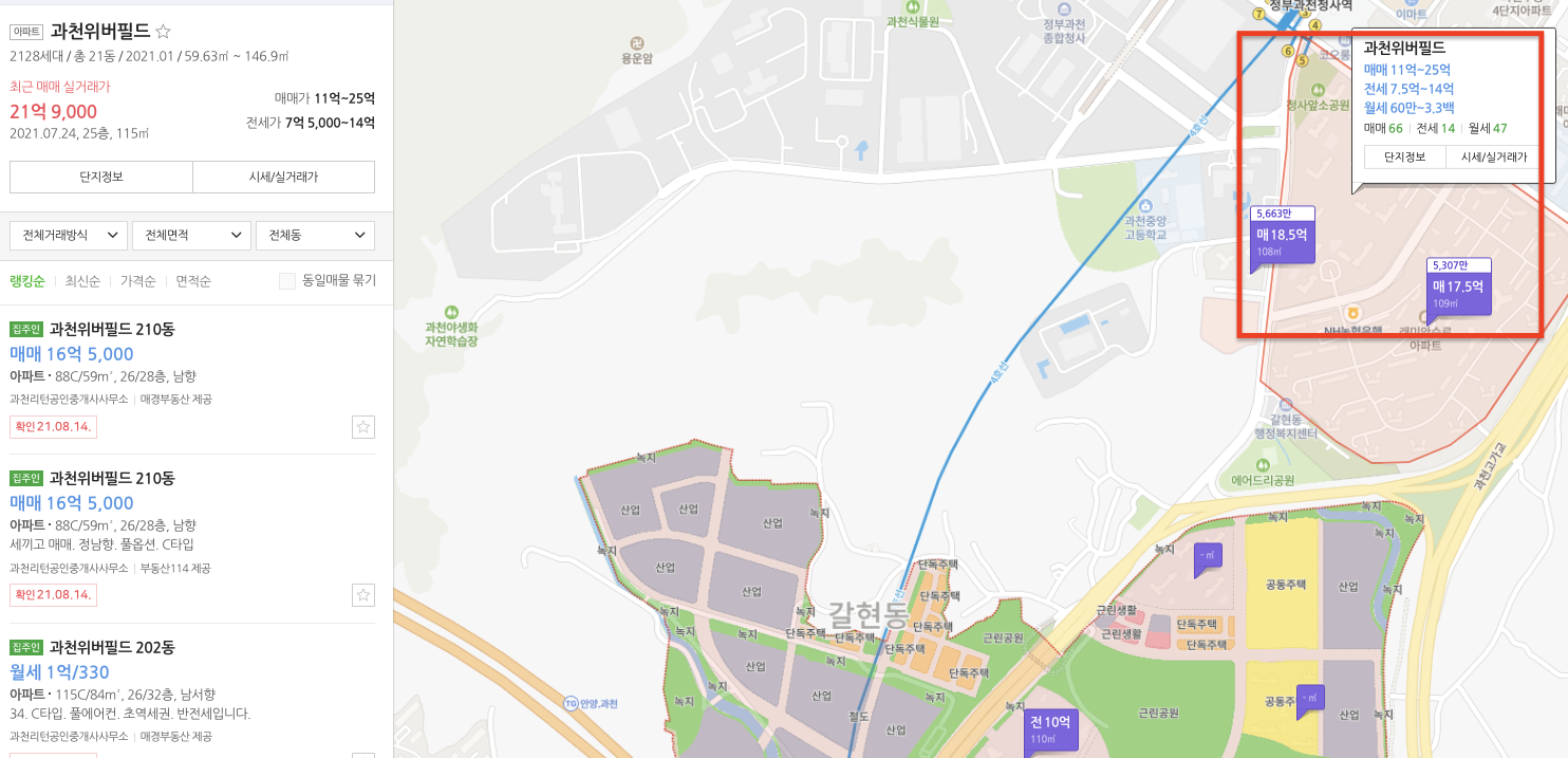 과천위버필드가 2021년 1월에 승인이 났는데요, 평단가 6,324만 원입니다.