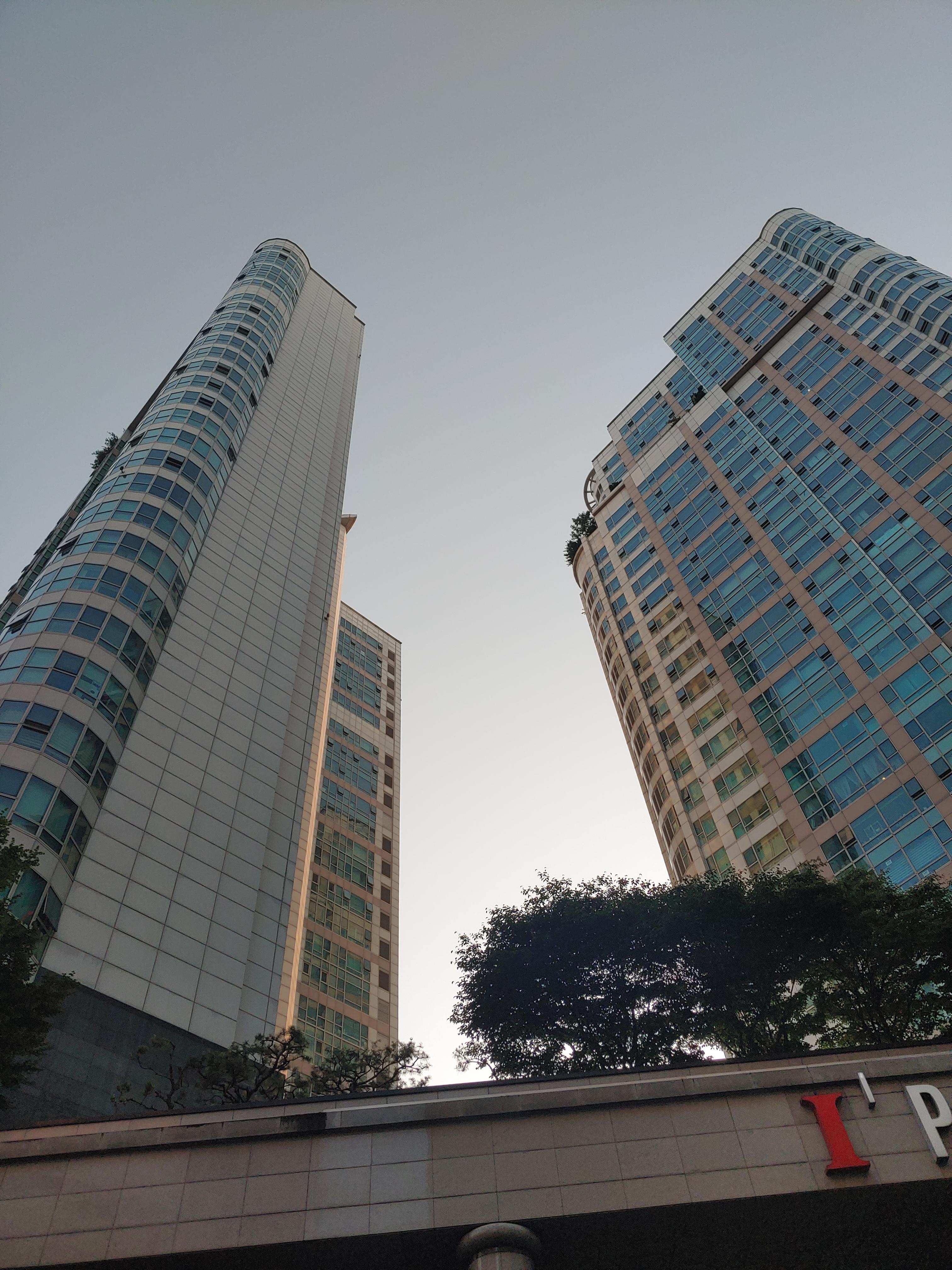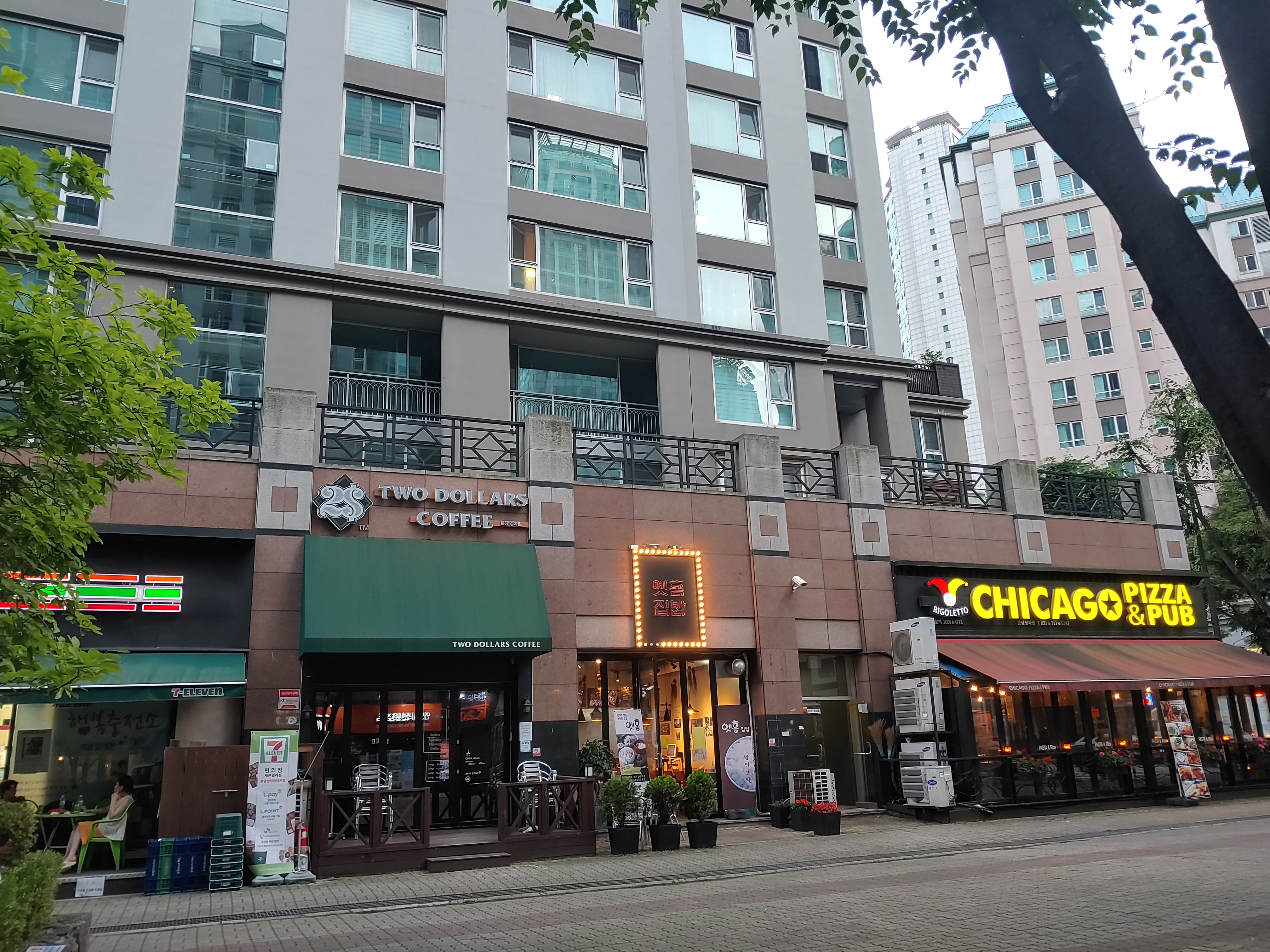 왼쪽으로는 상업지구에 올라간 넓은 평형의 아파트가 존재하고,