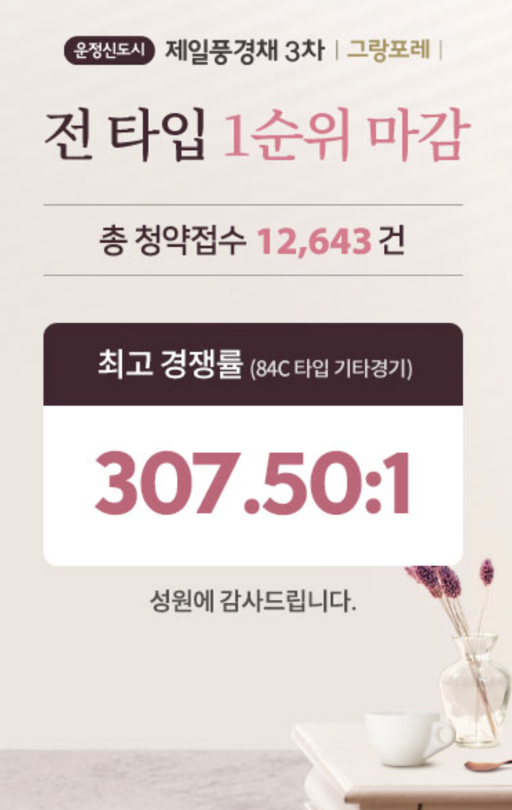 당시 제일풍경채 2차 84A 경쟁률은 30:1