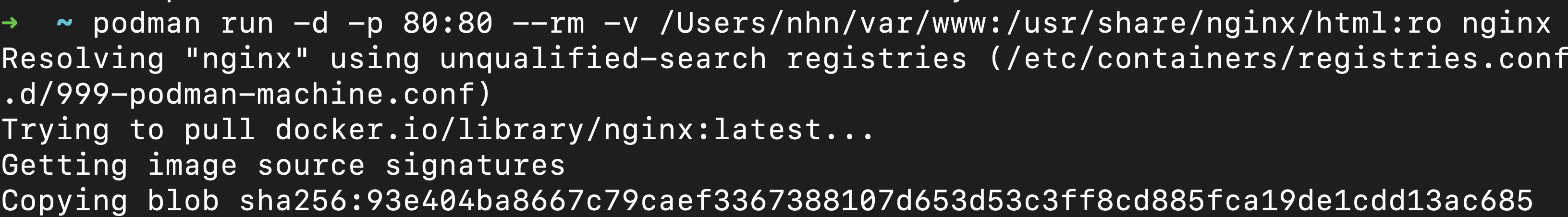 podman run -d -p 80:80 --rm -v /var/www:/usr/share/nginx/html:ro nginx
