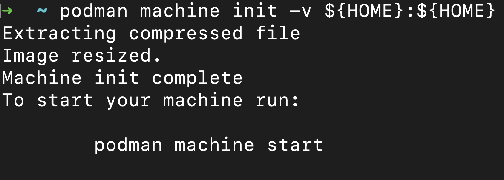 podman machine init -v ${HOME}:${HOME}