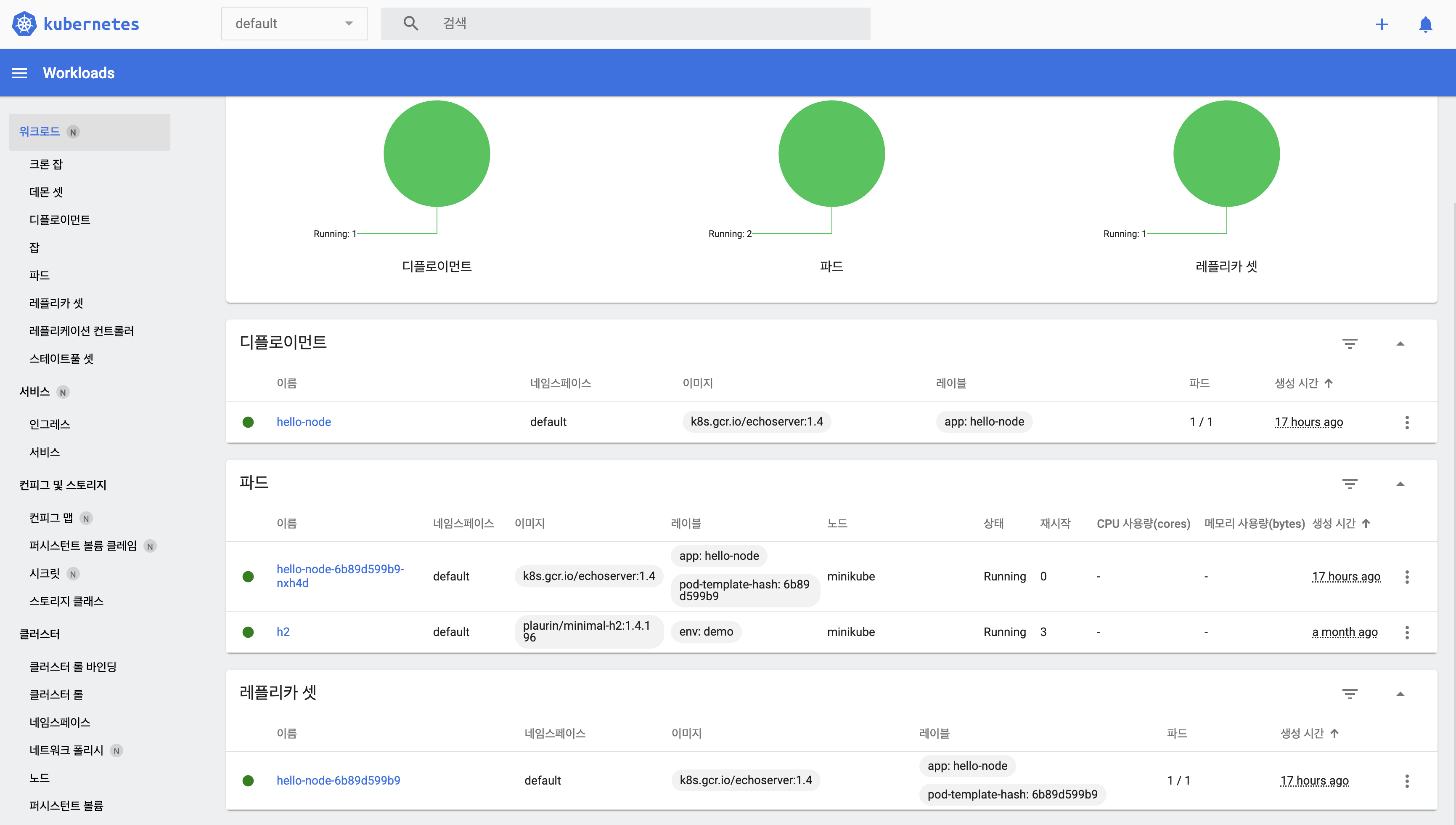 반면, pod로 직접 생성한 h2는 deployment 목록에선 확인되지 않는 것을 볼 수 있는데요.
